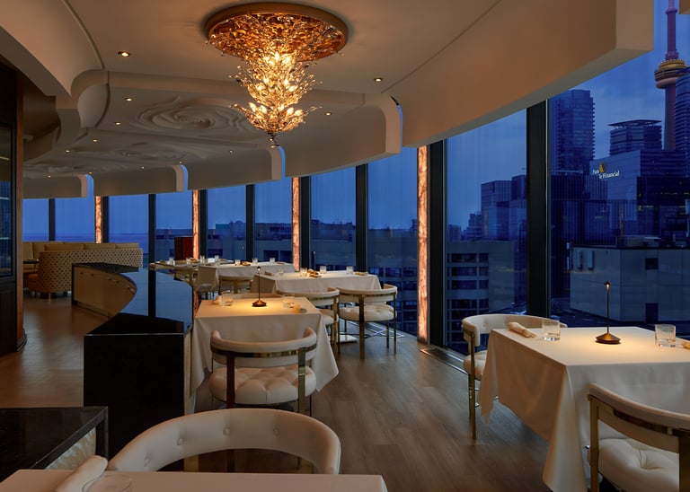 Located on the 38th floor of the Westin Harbour Castle Hotel with stunning 360 panoramic views of the waterfront and city in downtown Toronto. Showcasing the incredible cuisine of Chef Ernesto Iaccarino and the wonderful fresh flavors of the Amalfi coast, Don Alfonso 1890 is an internationally recognized award-winning concept with locations in Sant’Agata, Amalfi Coast, Italy; Levello, Basilicata, Italy; Helena Bay, New Zealand; Macau, China and now Toronto. Don Alfonso 1890’s cuisine is characterized by its modernity, Mediterranean flare, and the exceptional quality of the raw materials used.