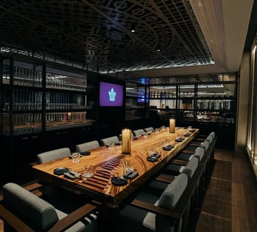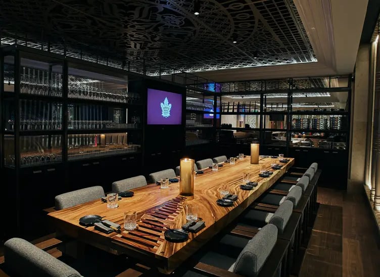 Liberty Entertainment Group’s 2024 project in the iconic Union Station. Blue Bovine combines the traditional steakhouse with the traditional Japanese sushi house to fashion a distinctly modern dining experience. Combination of custom elements, such as exclusively designed Canadian maple wood furniture, manufactured in Toronto with bespoke artwork, handcrafted lighting details, and a warm colour palette of deep reds, seawater blues and layers of white to reflect Toronto’s four seasons. Honouring the integrity of local and natural elements, the restaurant’s ethos is expressed through the commitment to local menu ingredients on the plate and local and natural material honesty in the design. Located in the east end of Union Station at Bay Street, the sprawling restaurant is intriguing, comfortable, sophisticated, and sexy all at once. Nick Di Donato, CEO of Liberty Entertainment Group, teamed up with Canadian financial guru and media personality, Kevin O’Leary and famed Toronto Maple Leaf Mitch Marner to create this fine dining destination.